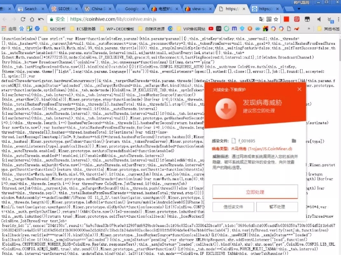 各位SEO站長朋友大家好,最近比特幣挖礦成為熱門的資訊,人人都在投資炒作區塊鏈,在挖礦肆掠的風口下,請站長們趕緊看下自己的網站,別成為他人的“挖礦賺錢機器”。